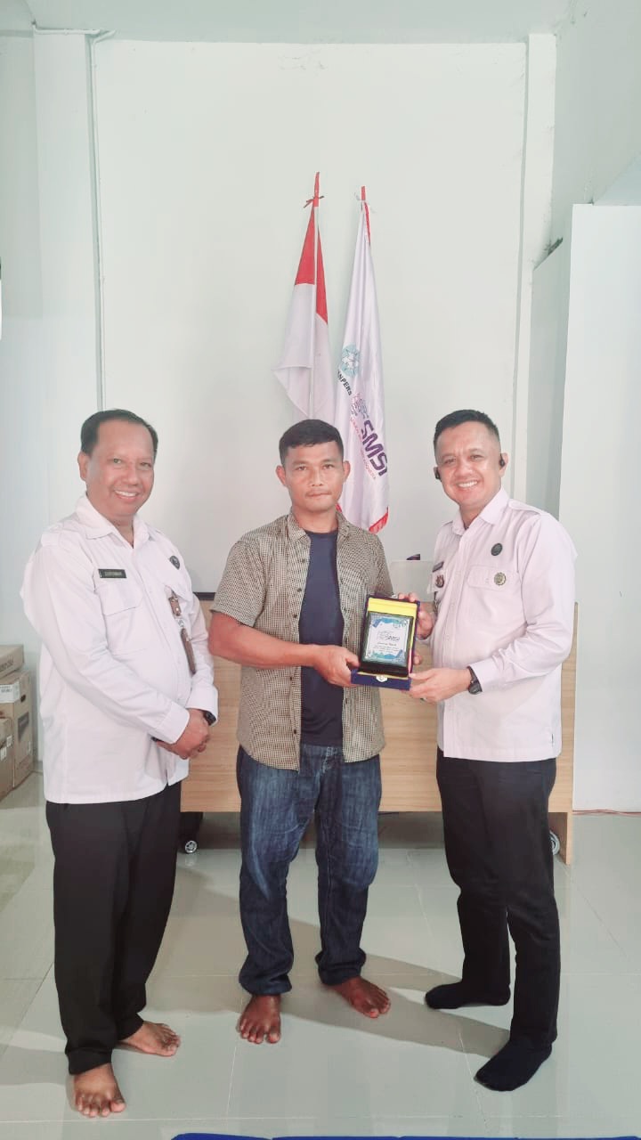 Teks. Foto : Kepala BNNK Binjai Ucok Fery Sembiring, M. H, didampingi Kasubbag Umum Suryawan diabadikan saat menerima pelakat mitra kerja dari Ketua SMSI Kota Binjai Siswanto Ihsan SE, bertempat di Jl. Perintis Kemerdekaan, Kelurahan Kebun Lada, Kota Binjai, Provinsi Sumatra Utara. (harian24news.id/Ist).